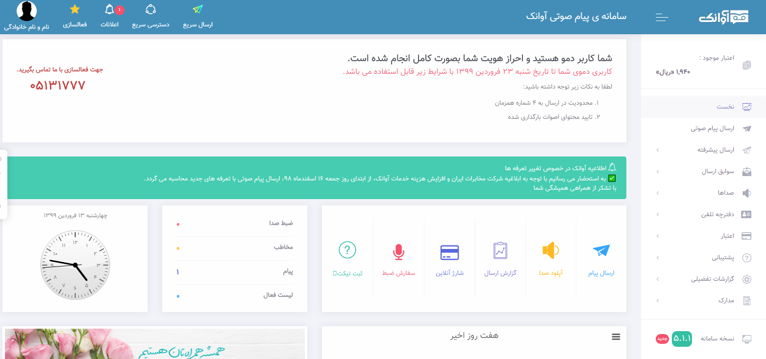 فعالسازی سامانه پیام صوتی آوانک