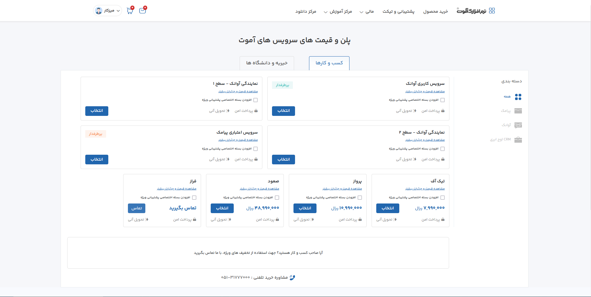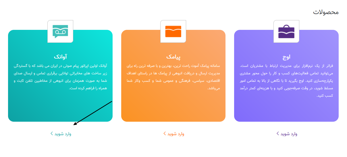 با کلیک کردن بر روی هریک از محصولات به صفحه توضیحات آن محصول وارد میشویم با عنوان مثال ما با کلیک کردن بر روی سامانه کاربری آوانک (دائمی) وارد صفحه توضیحات مربوط به آن می شویم .