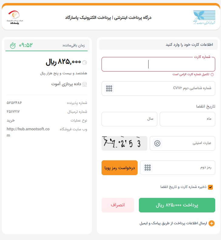 در این قسمت وارد درگاه بانکی شده و نیاز است تا اطلاعات کارت بانکی خود را وارد نماییم و پرداخت را انجام دهیم.