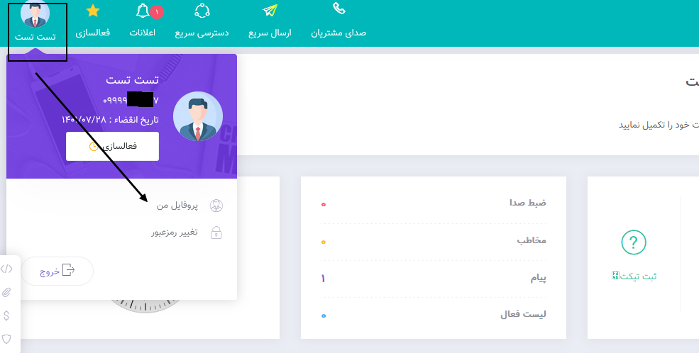 در صفحه نخست پنل کاربری خود بر روی فعالسازی کلیک نمایید.