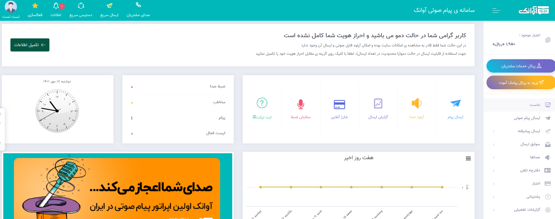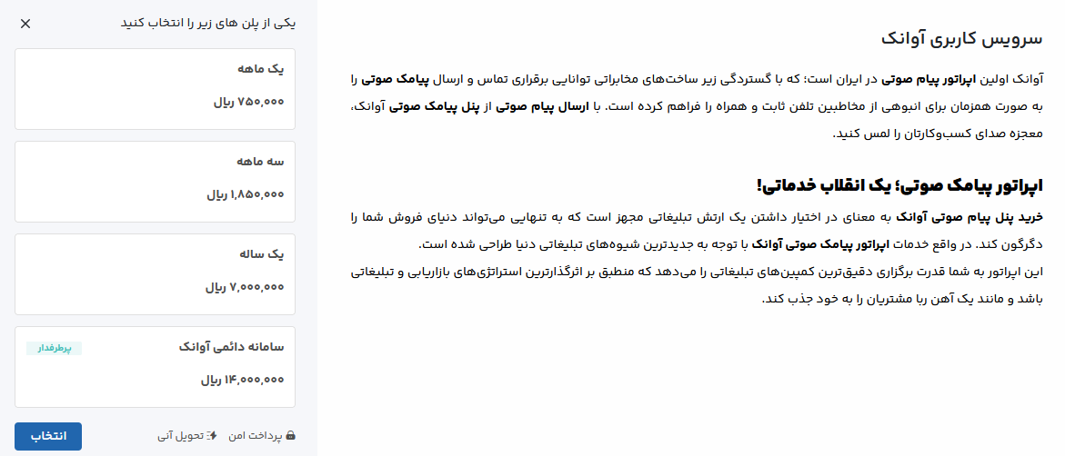 ثبت نام در سامانه پیام صوتی آوانک :