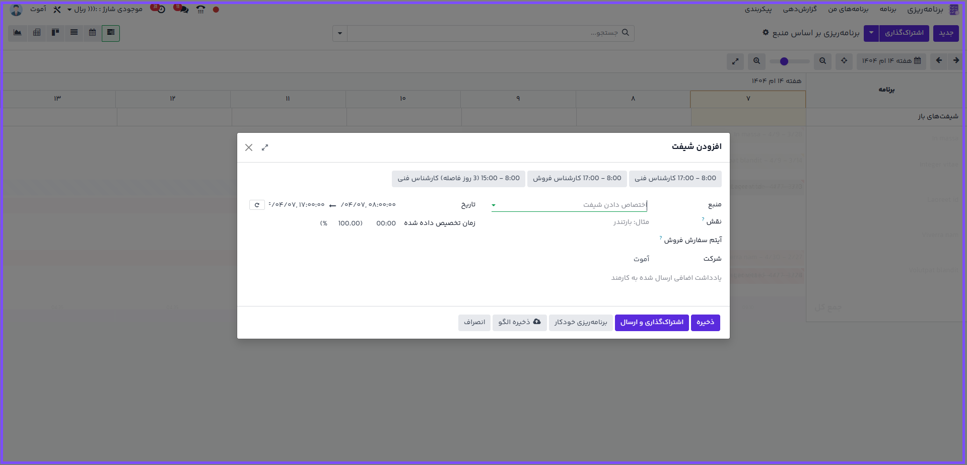 مدیریت و تخصیص منابع با ماژول برنامهریزی