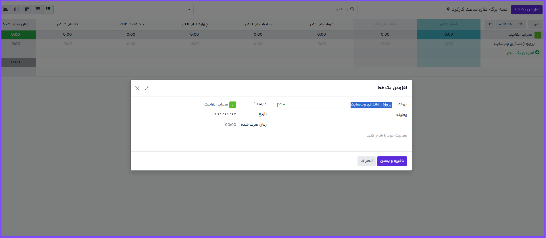 آموزش تایم شیت (برگه ساعات کارکرد)
