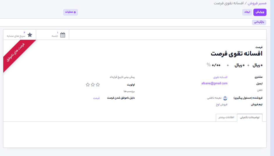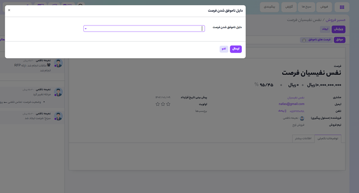 برای مشاهده دکمه باخته، در داشبورد فرصتها بر روی هر فرصتی که میخواهید کلیک نمایید.