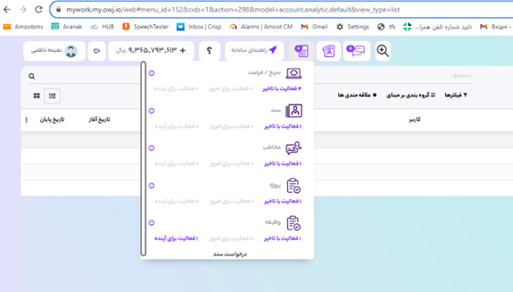 هم از قسمت کادر پیامها با کلیک بر روی فعالیتها و هم از نمای کانبان با کلیک بر روی آیکون ساعت میتوان فعالیتها را برنامهریزی و مدیریت کرد.