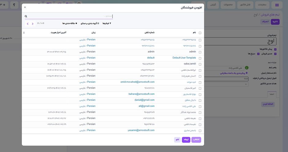 افزودن اعضاء به تیم فروش
