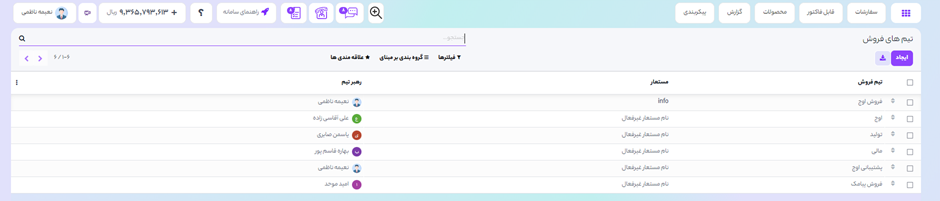 ایجاد تیم فروش جدید