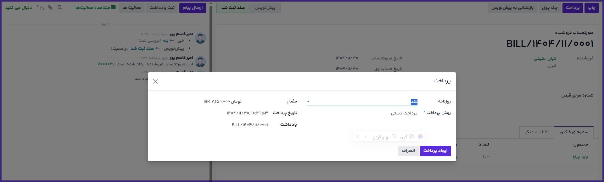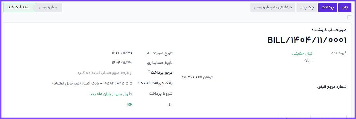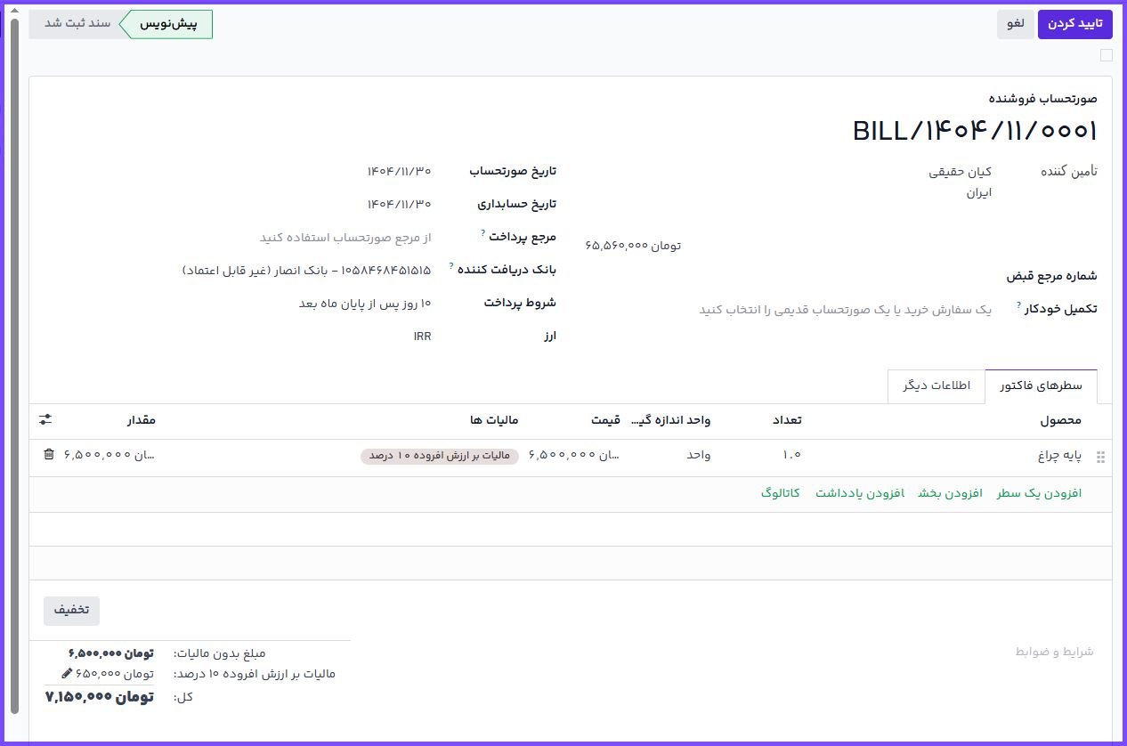 ایجاد صورتحساب در ماژول خرید