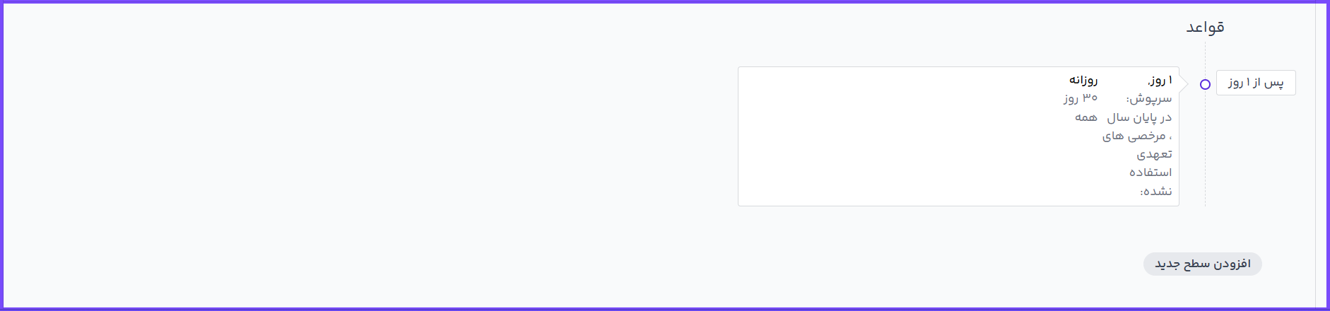 محدودیت سطح : در صورت نیاز میتوانید تعیین کنید که مرخصیهای تعهدی تا چه زمانی قابل استفاده هستند.
