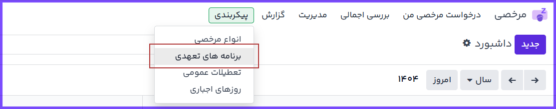 برنامه مرخصی ◄ پیکربندی ◄ برنامههای تعهدی