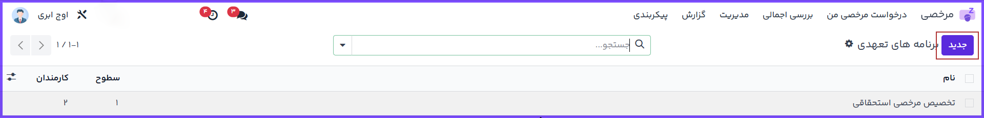 در این صفحه فهرستی از تمام برنامههای تعهدی تعریفشده نمایش داده میشود.