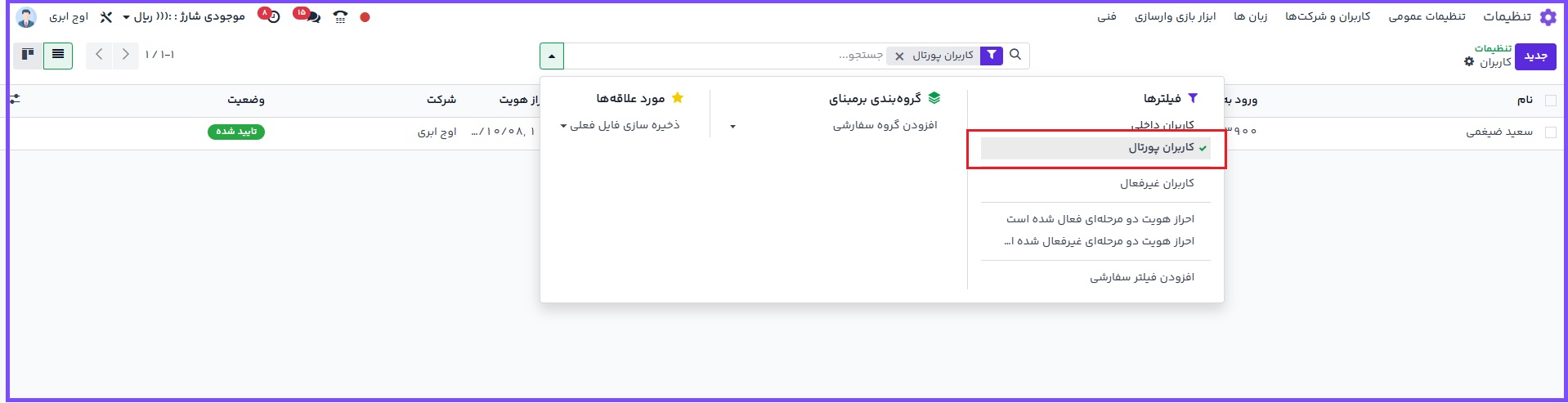 برای اعطای دسترسی پرتال، ابتدا وارد ماژول مخاطبین شوید و مخاطب موردنظر را باز کنید.