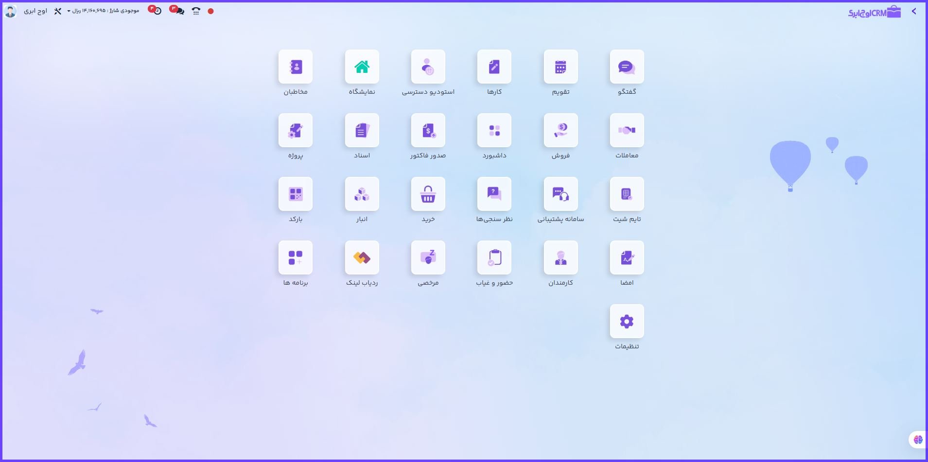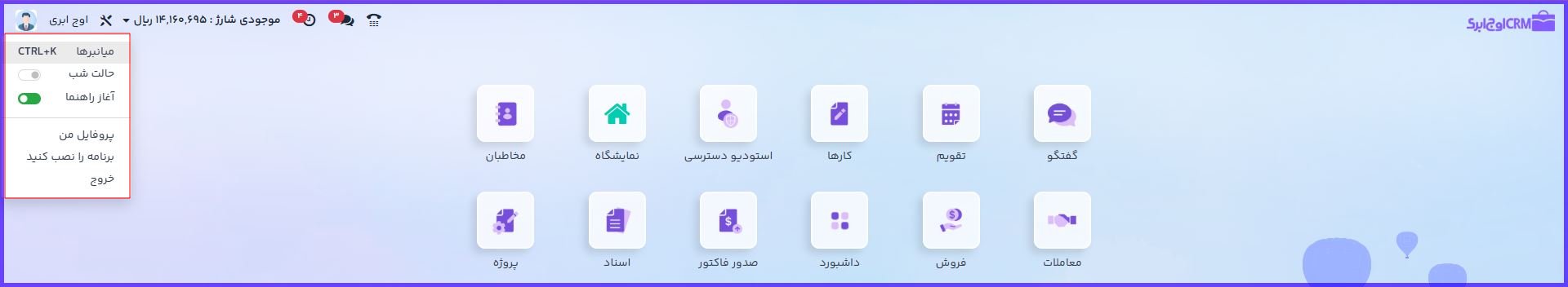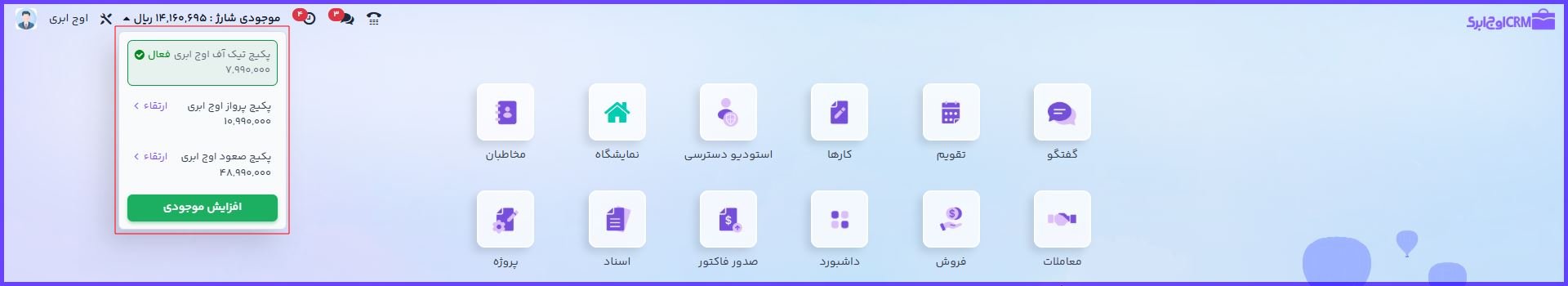 این گزینه موجودی اعتبار حساب در اوج ابری را نشان میدهد.