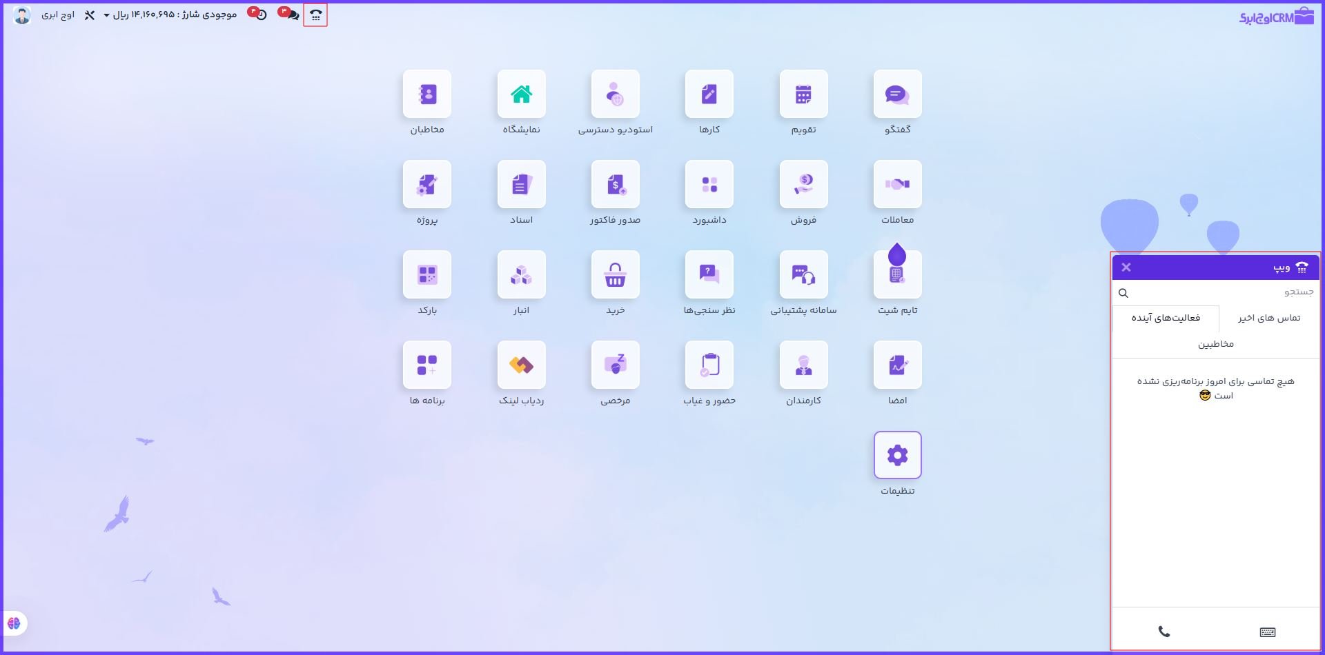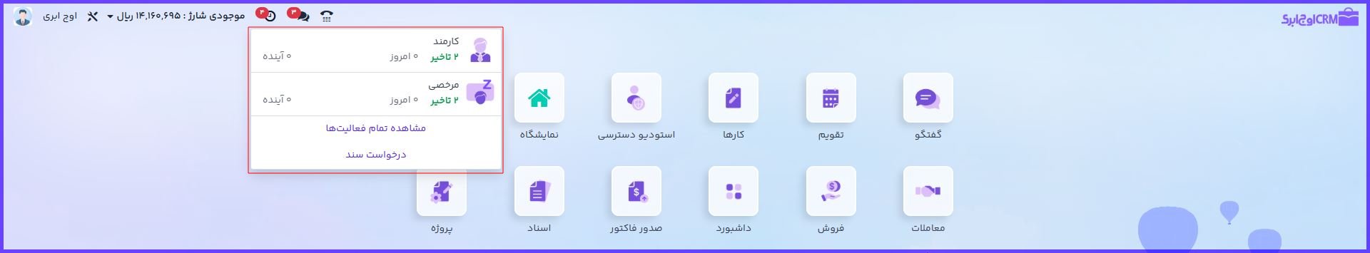 در این قسمت تمام فعالیتهای برنامهریزی شده مربوط به شما نمایش داده میشود.