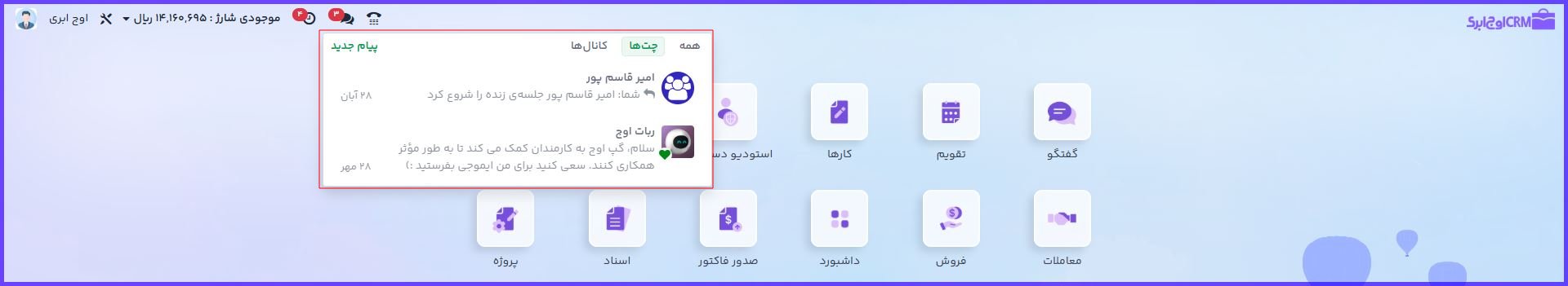 تمام گفتگوهای اخیر شما در این بخش نمایش داده میشود و با کلیک روی هر گفتگو، وارد صفحه چت خواهید شد.