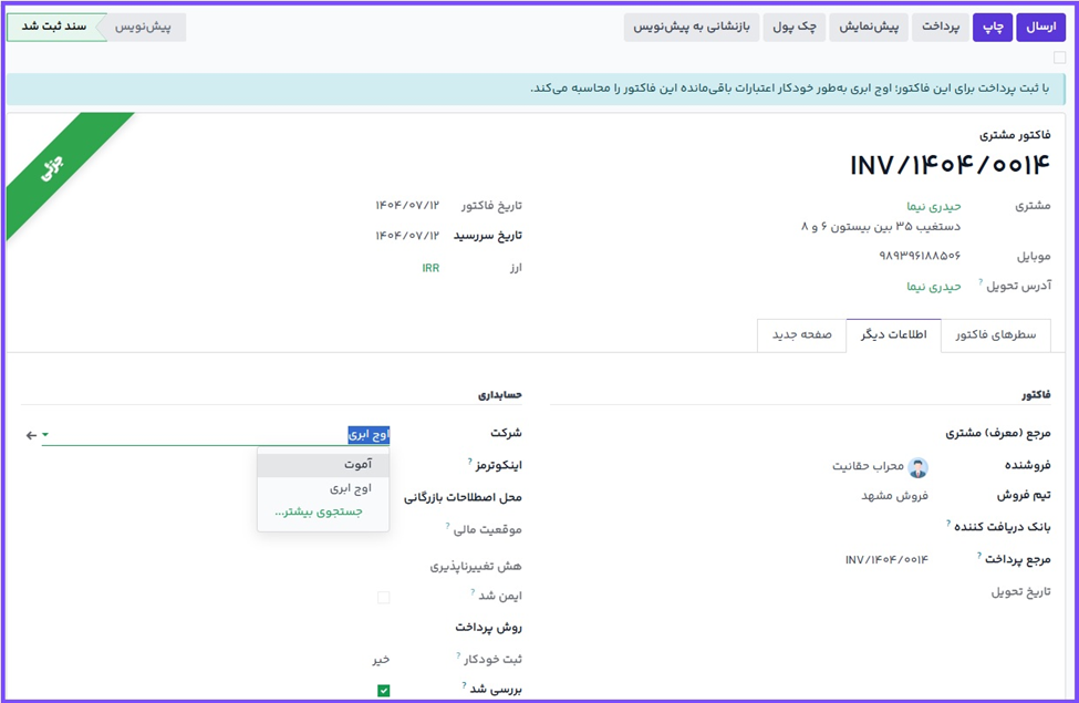 اگر برای یک کاربر چند شرکت در پایگاه دادهاش فعال شده باشد، و او در حال ویرایش یک رکورد باشد، ویرایش در شرکت مرتبط با رکورد اعمال میشود.