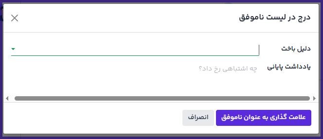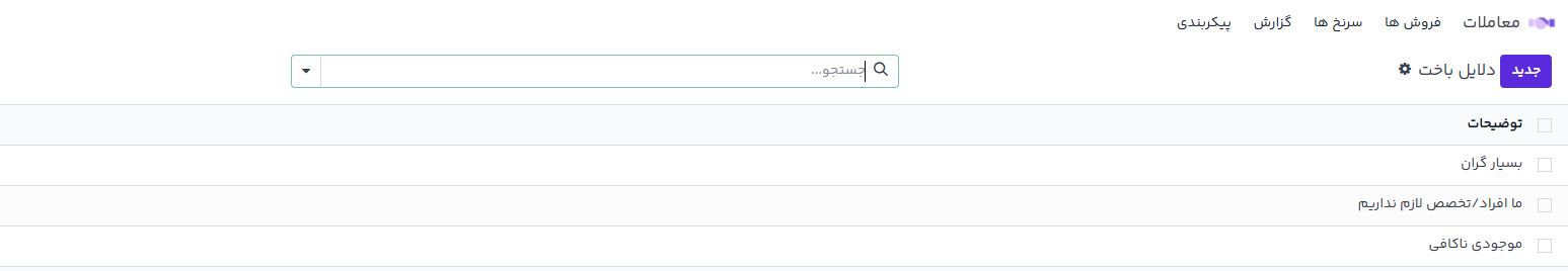 نکته مهم : ثبت دلایل باخت برای گزارشهای مدیریتی و ردیابی عملکرد تیم فروش اهمیت زیادی دارد.