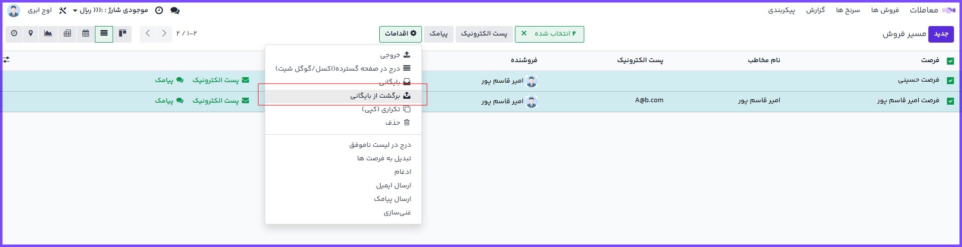 با این کار فرصتها دوباره فعال میشوند و از لیست فرصتهای باخته حذف خواهند شد.