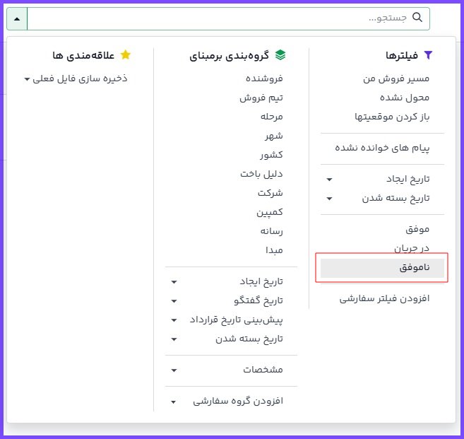 در نمای لیست فرصتها، فیلتر ناموفق را اعمال کنید.