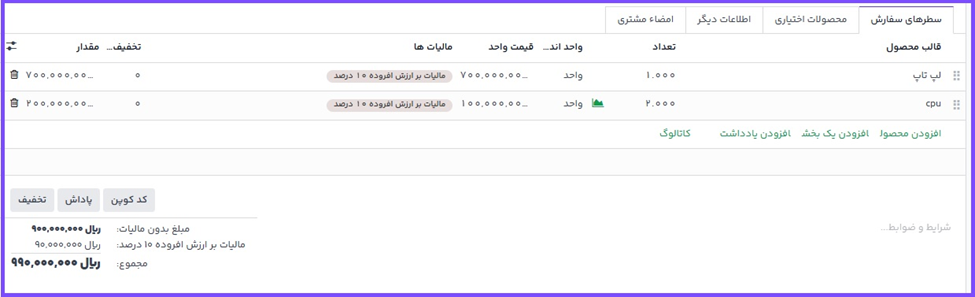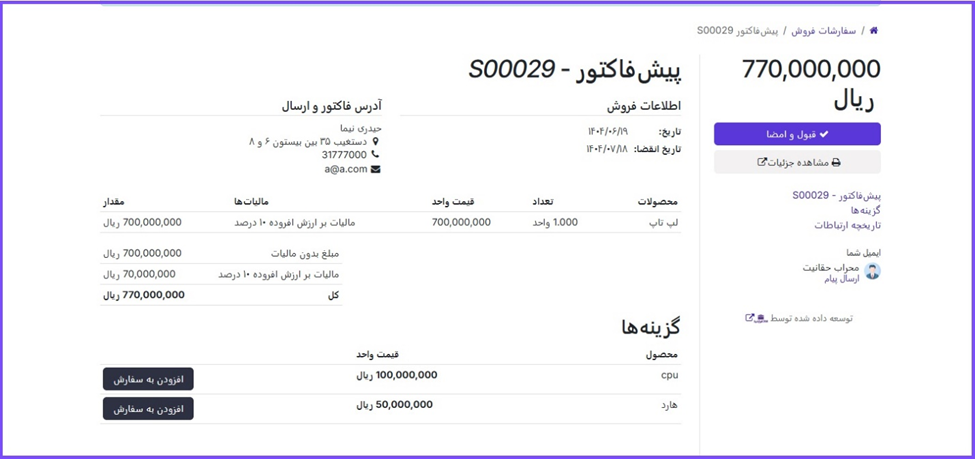 هر محصولی که مشتری انتخاب کند، به صورت خودکار به پیشفاکتور افزوده میشود و فروشنده نیز بلافاصله تغییرات را مشاهده خواهد کرد.