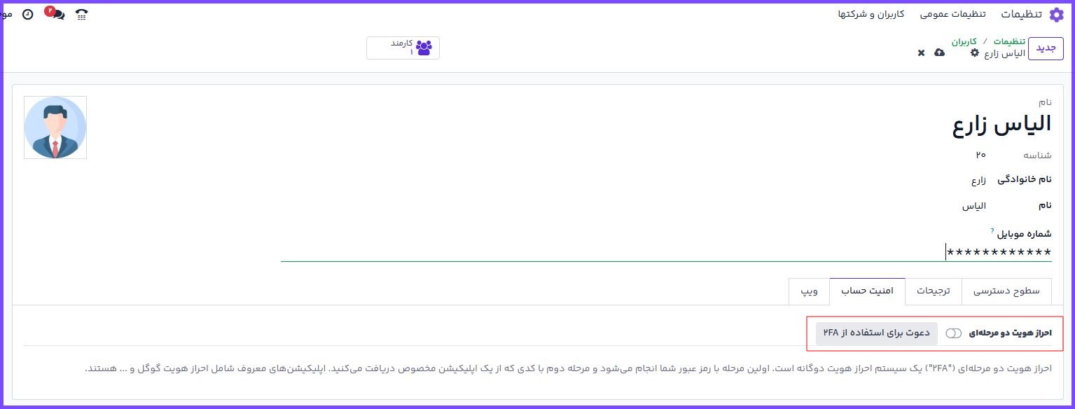 ⚠️ هشدار: هرگز کاربر اصلی مدیر (admin) را غیرفعال نکنید، زیرا میتواند باعث از دسترس خارج شدن تنظیمات حیاتی پایگاه داده شود.