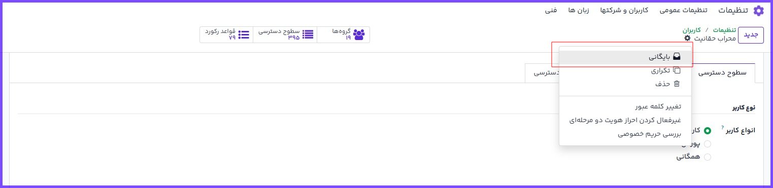 برای غیرفعال کردن (بایگانی) کاربر: