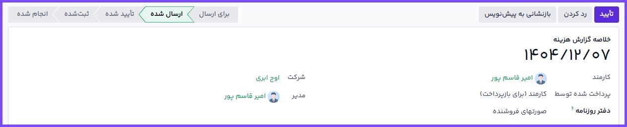 با این کار وضعیت گزارش از «پیشنویس» به «ارسالشده» تغییر میکند و منتظر بررسی مدیر خواهد بود.