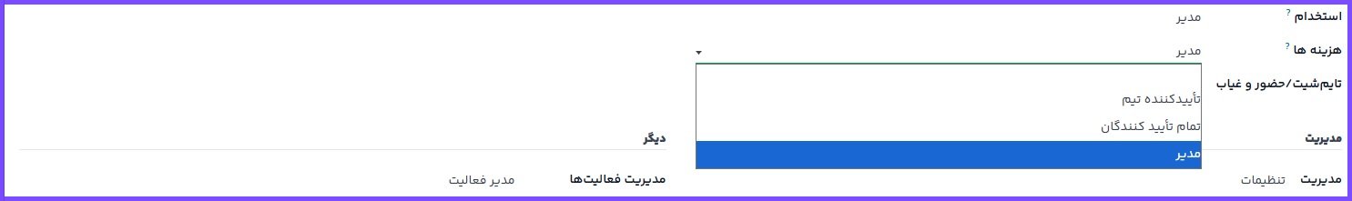 سطوح دسترسی در بخش هزینهها: