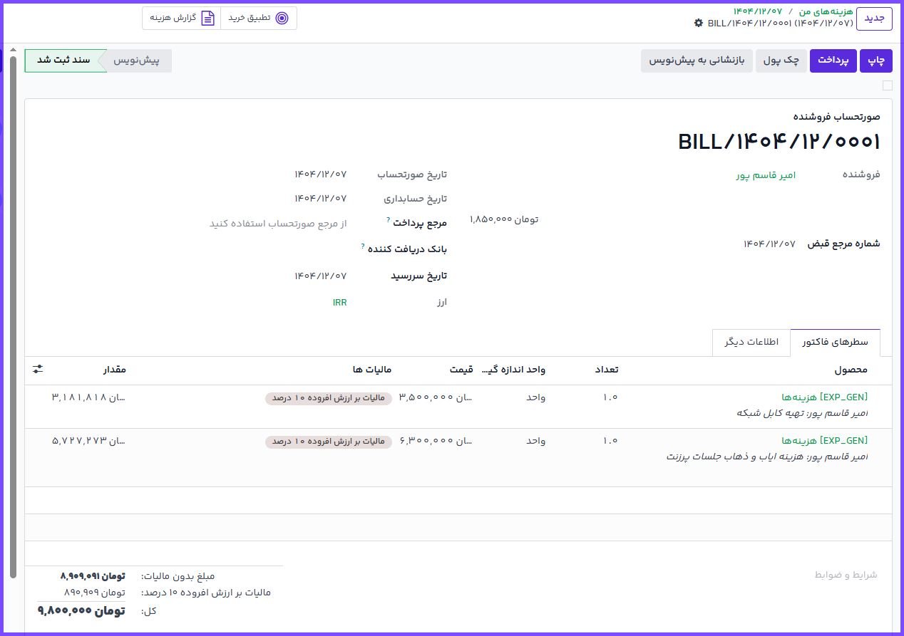 مدیریت گزارش هزینه در ماژول هزینهها
