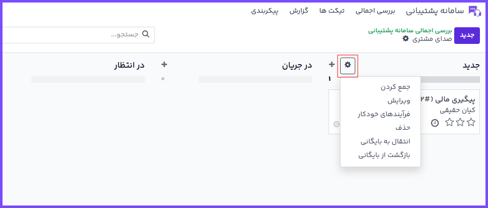 در اوج ابری، مراحل کاملاً قابلسفارشیسازی هستند و میتوانید آنها را متناسب با روند تیم پشتیبانی خود تعریف، ویرایش یا بازآرایی کنید.