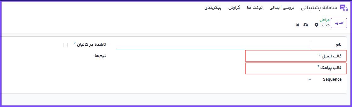 برای ایجاد مرحله جدید، روی دکمهی ایجاد کلیک کنید و در فرم بازشده: