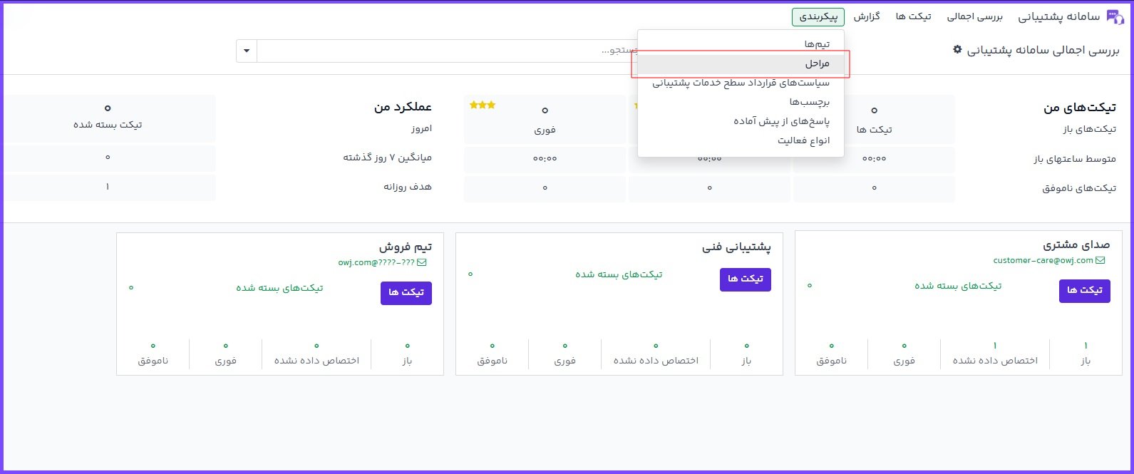مراحل برای سازماندهی فرایند رسیدگی به تیکتها و ردیابی وضعیت آنها استفاده میشوند.