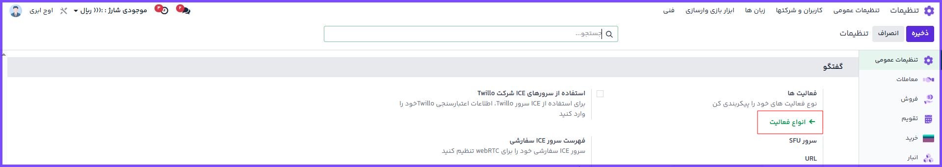 تنظیمات ◄ بخش گفتگو ◄ انواع فعالیتها