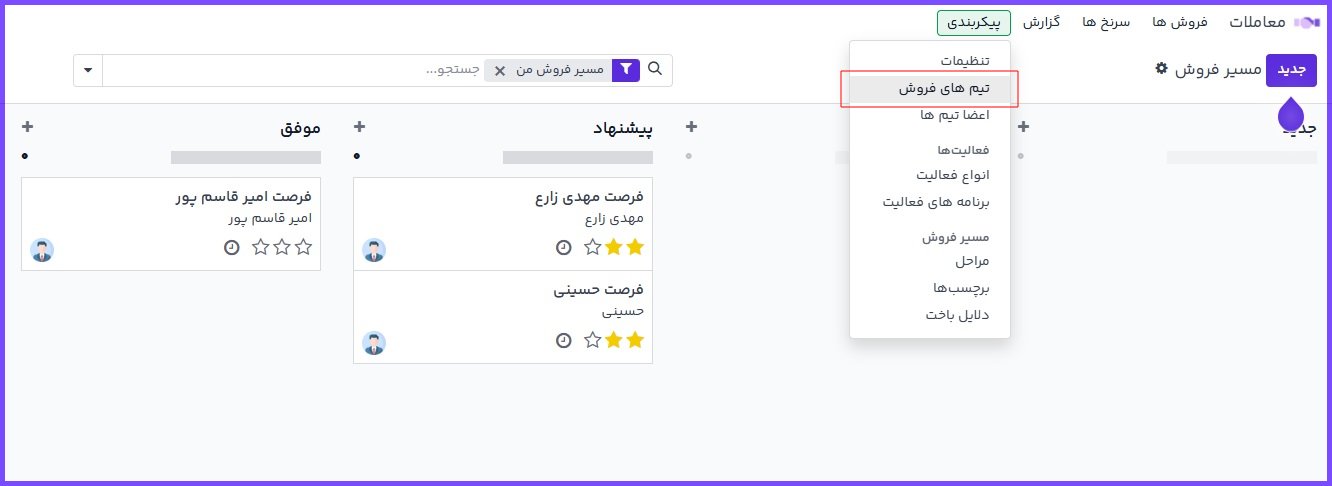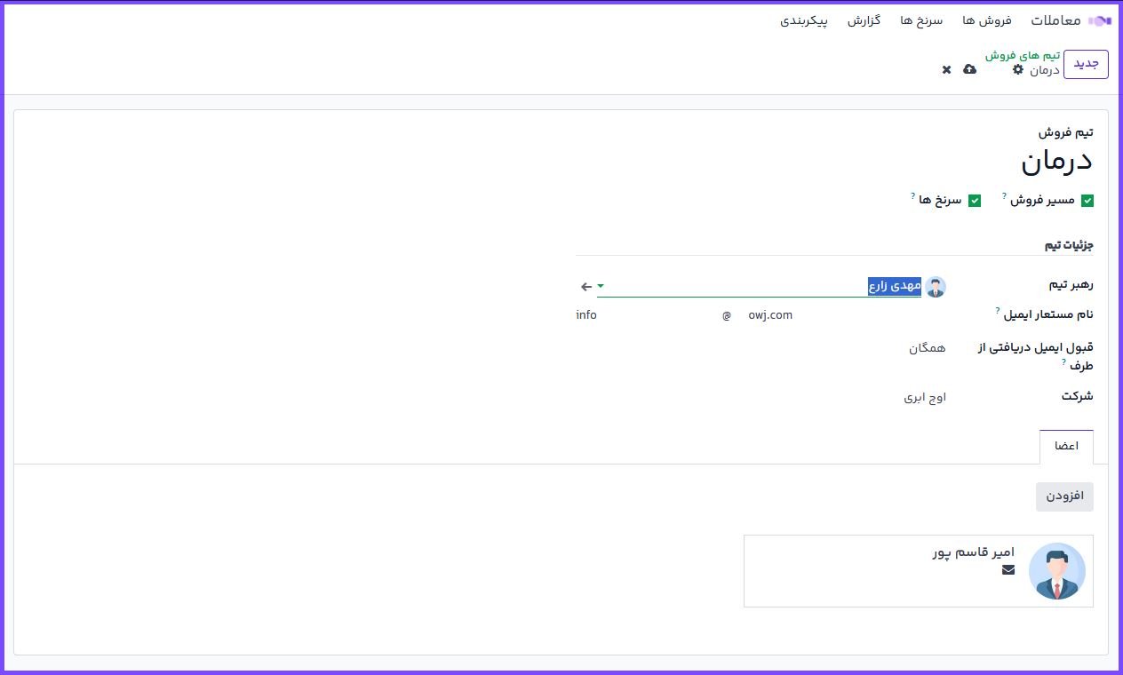 معاملات ◄ پیکربندی ◄ تیمهای فروش