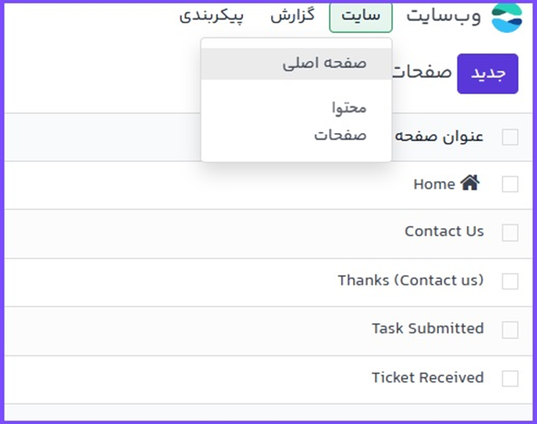 صفحات وبسایت را میتوان از فرانتاند و همچنین بکاند ایجاد کرد. برای ایجاد صفحه جدید در وبسایت: