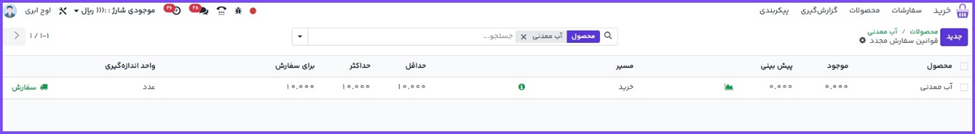 لازم است برای برخی از محصولات مطمئن باشیم همیشه و هر زمانی مقداری موجودی در دست داریم. با افزودن قانون سفارش مجدد برای محصول، میتوان فرآیند سفارش مجدد را خودکار کرده و هرگاه موجودی محصولی به کمتر از آستانه مشخص شده رسید، سفارش خرید خودکار ایجاد شود.