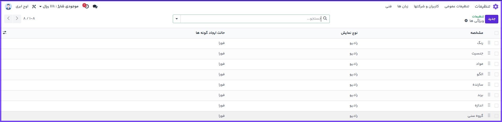 🔹 مسیر: فروش ◄ پیکربندی ◄ مشخصهها