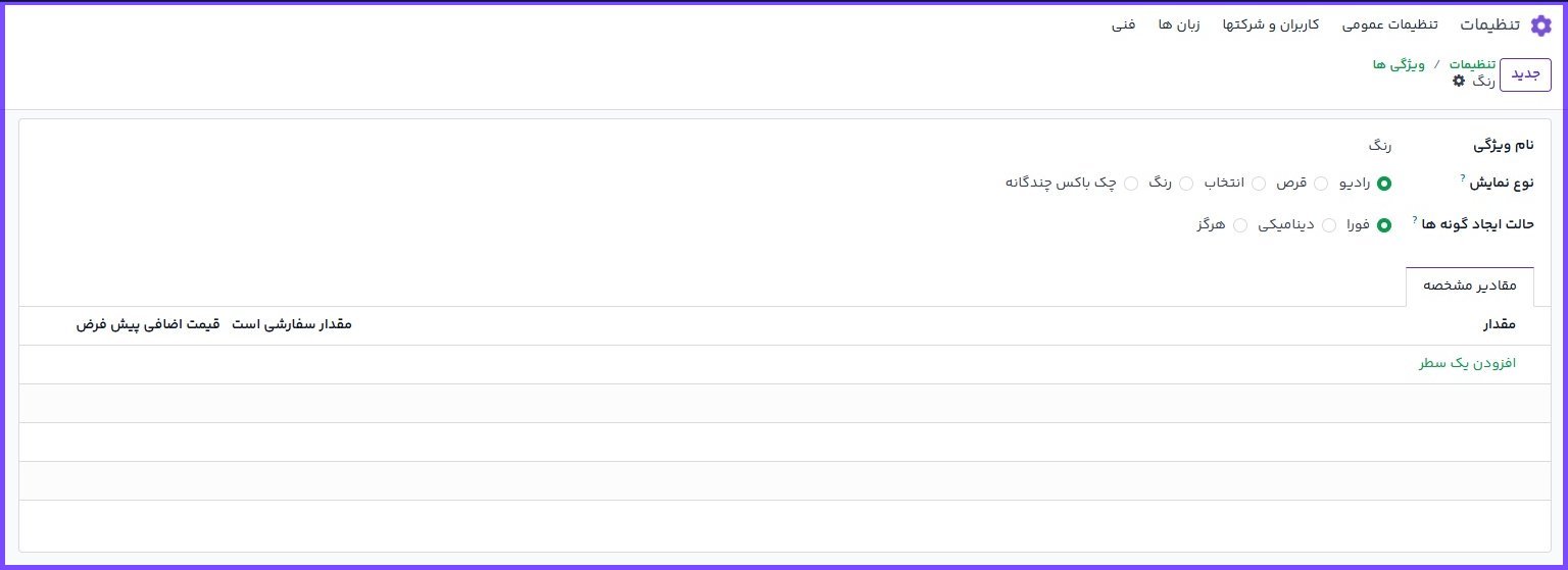 نکته: پس از افزودن مشخصه به محصول، حالت ایجاد گونه قابل تغییر نیست.