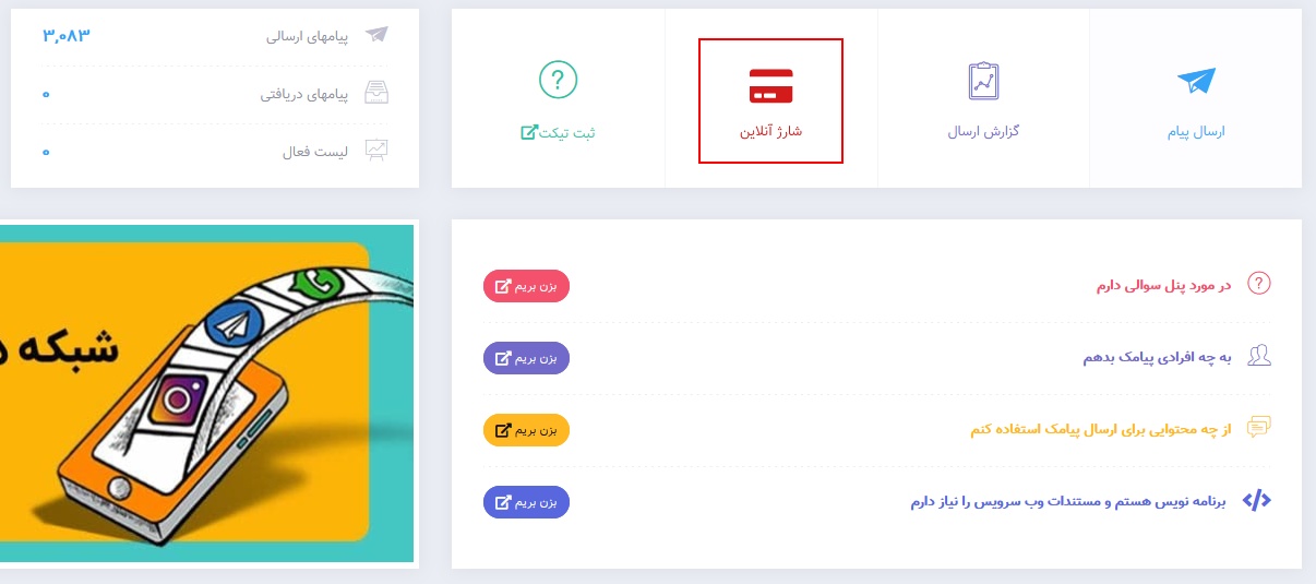 نکته : مبلغ شارژ شده در پنل شما غیرقابل برگشت است، بنابراین در وارد کردن مبلغ دقت لازم را به عمل آورید.